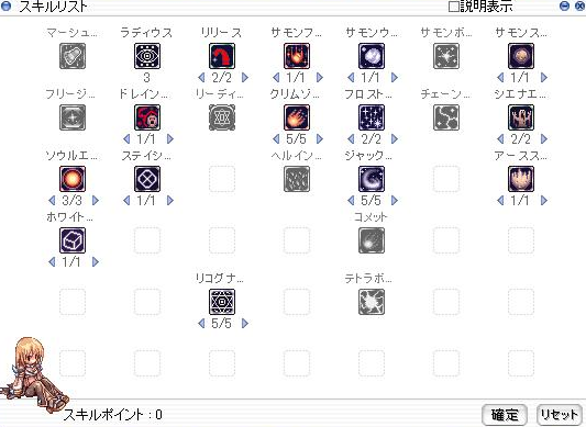 凍結と石化の耐性ステータスが変わるとか何とか・・・ http://www.ragnarokonline.jp/news/information/notice/kue8e6000000b1c3.html スキルリセットとステータスリセットが使えるようになるのですが現在使ってなかったので変更してみました。 はじめはコメットに憧れてコメット優先で取っちゃったんですがほぼ話にならないぐらい使いにくい。 クールタイム5分ってどうなの・・・ ある程度知識をつけてから動かないとダメですねぇ(ノ◇≦。) ビェーン!! しかもコメットの使いどころが難しすぎた。 属性無いゆえにメリットあるの聖属性のMOBぐらい・・・ しかもね・・・ 聖属性のMOBには・・・ 闇属性のヘルインフェルノ ![]() これがあるんで・・・ ダメが総合的にみて中途半端です・・・Σ( ̄ε ̄;|||・・・ そういうわけで・・・ ET用に各属性の大魔法とって活躍の場を増やそう!見たいな感じです。 というわけで、、、 [火]メテオスォーム [火]クリムゾンロック [水]ストームガスト [水]ジャックフロスト [土]アーストレイン [風]ロードオブヴァーミリオン [風]チェーンライトニング [闇]ヘルインフェルノ 全部とることにしました。 念魔法は現状あんまり使いどころ無いのですが、ソウルエクスパンションが念属性で前提にありますね。 無属性に関してもドレインライフが前提となっています。 というわけで、聖属性以外は全部持ってるウォーロックの完成O(≧▽≦)O ワーイ♪ 温もり、ソロ、ET一応どれでもいけるはず。 魔法職は特化が無いんで満遍なく魔法もってたほうが案外いいかもしれませんね~。 |